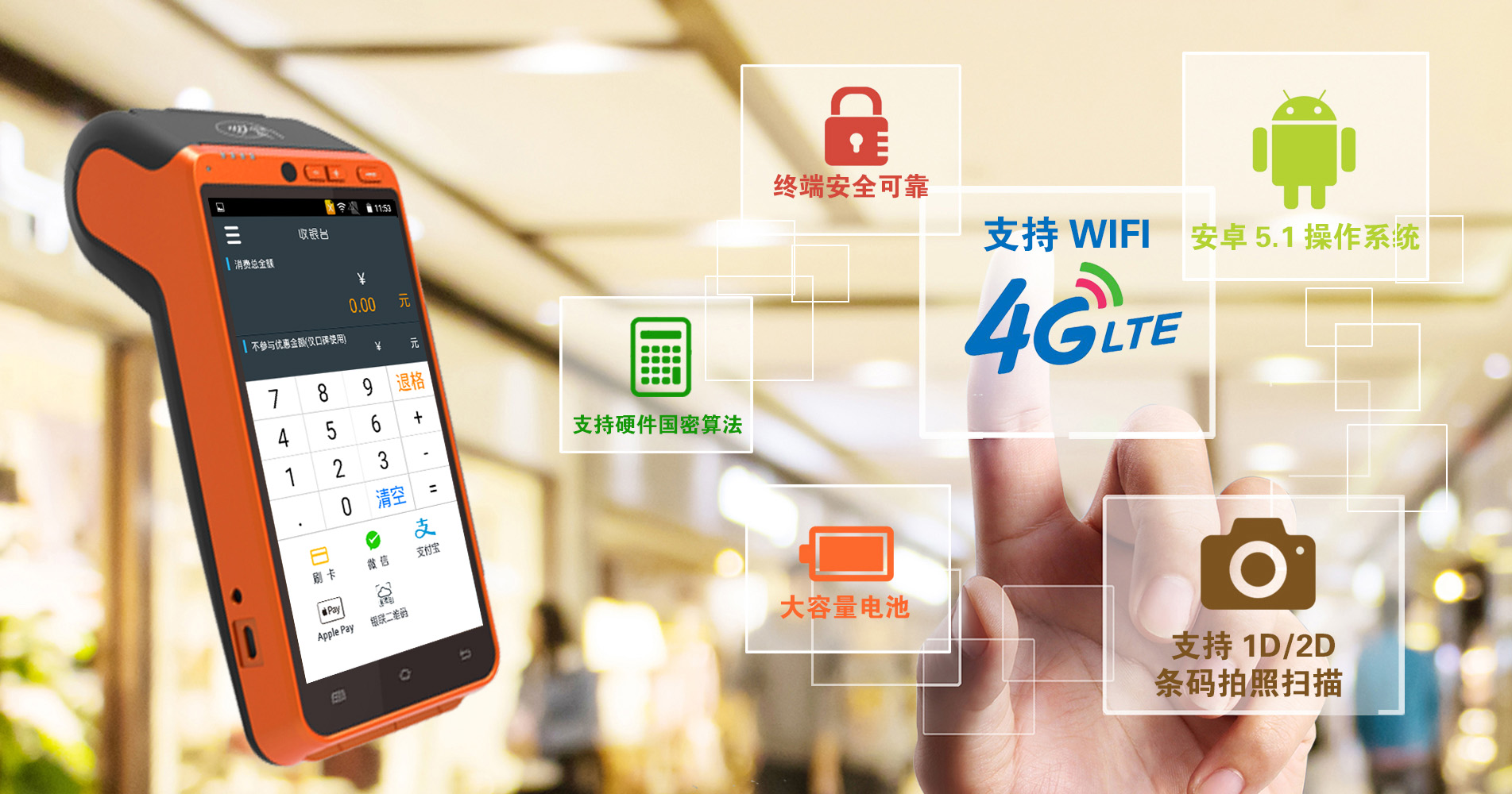 APOS A8智能POS機終端產品采用高通4G全網通平臺方案,產品性能強勁,不僅同時支持3大運營商的所有4G、3G、2G通訊制式,而且支持流暢運行Android5.X操作系統版本,具備良好的系統體驗與通訊兼容性。產品采用5.5寸720P高分辨率電容屏,一體化集成磁條卡、IC卡、熱敏打印、拍照、1D/2D條碼掃描、Wi-Fi、藍牙等功能模塊,全面支持銀行卡、NFC、聲波、掃碼等多種支付方式,滿足團購外賣、移動收銀、會員營銷等眾多移動互聯網的功能應用,擴展POS終端的增值應用服務。