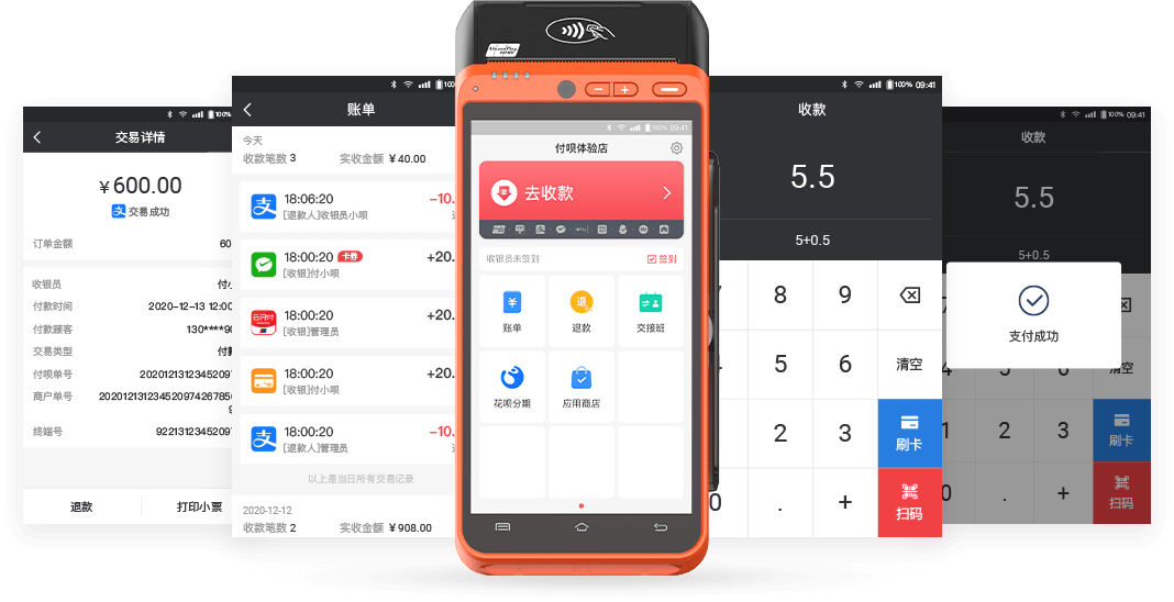 支持磁條卡、IC卡、NFC、二維碼全渠道收款