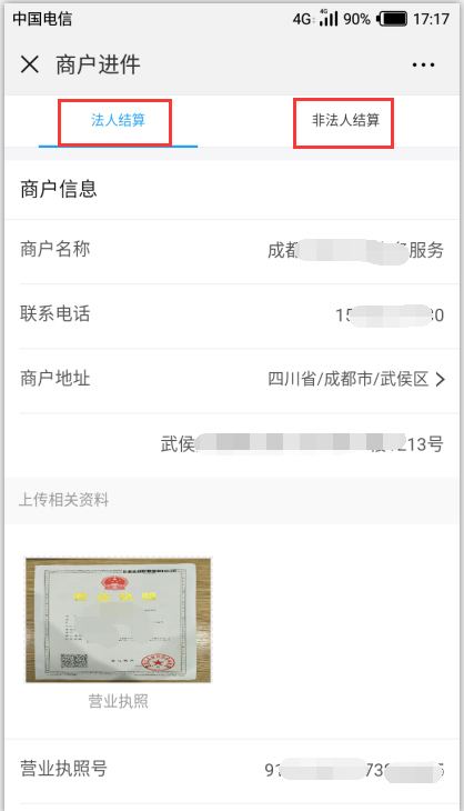 五:1、進(jìn)入商戶進(jìn)件:選擇法人進(jìn)件。根據(jù)提示依次填寫(xiě)信息并上傳營(yíng)業(yè)執(zhí)照。