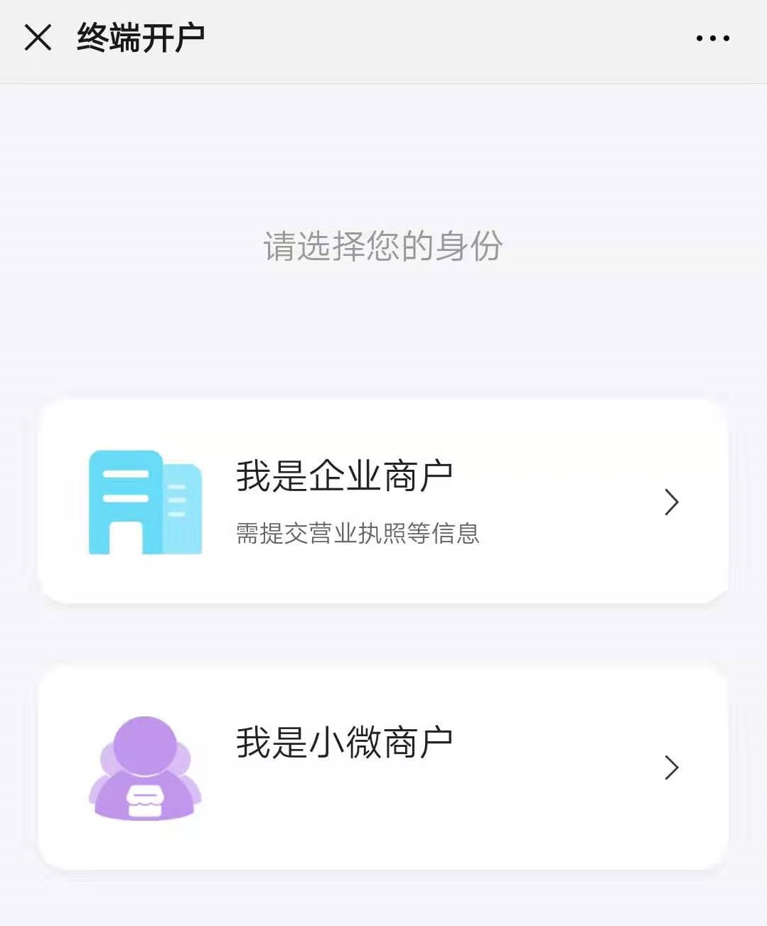 四:進(jìn)入終端開(kāi)戶,選擇“我是企業(yè)商戶”注冊(cè)(選擇企業(yè)商戶進(jìn)件需真實(shí)營(yíng)業(yè)執(zhí)照等)