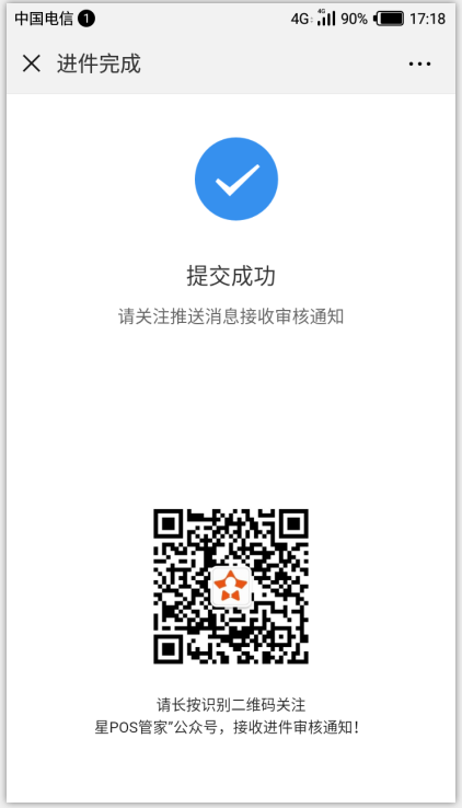 六、注冊(cè)完成后等待審核。可在微信上關(guān)注“星pos管家”并下載“星pos管家”APP用注冊(cè)手機(jī)號(hào)登陸可查賬對(duì)賬。