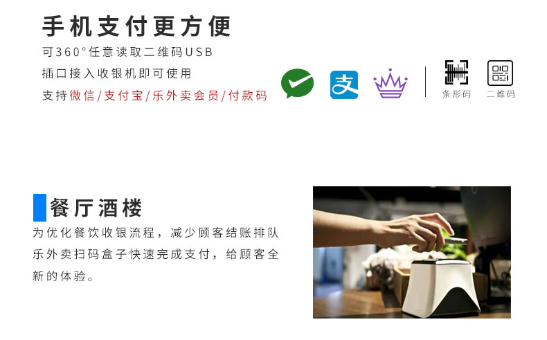 微信支付寶掃碼盒子-對接收銀系統一鍵收款